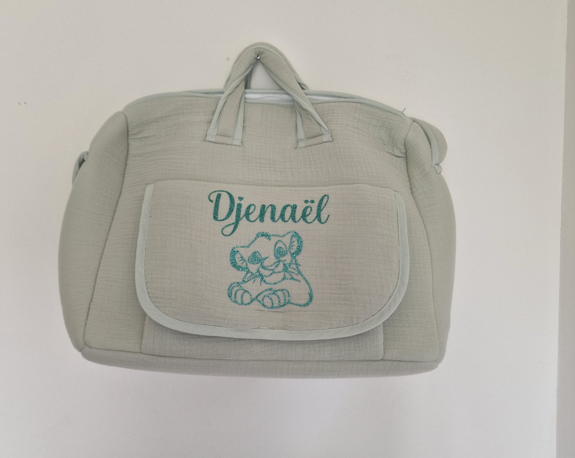 Un joli sac à langer accompagné d'une pochette de sortie.