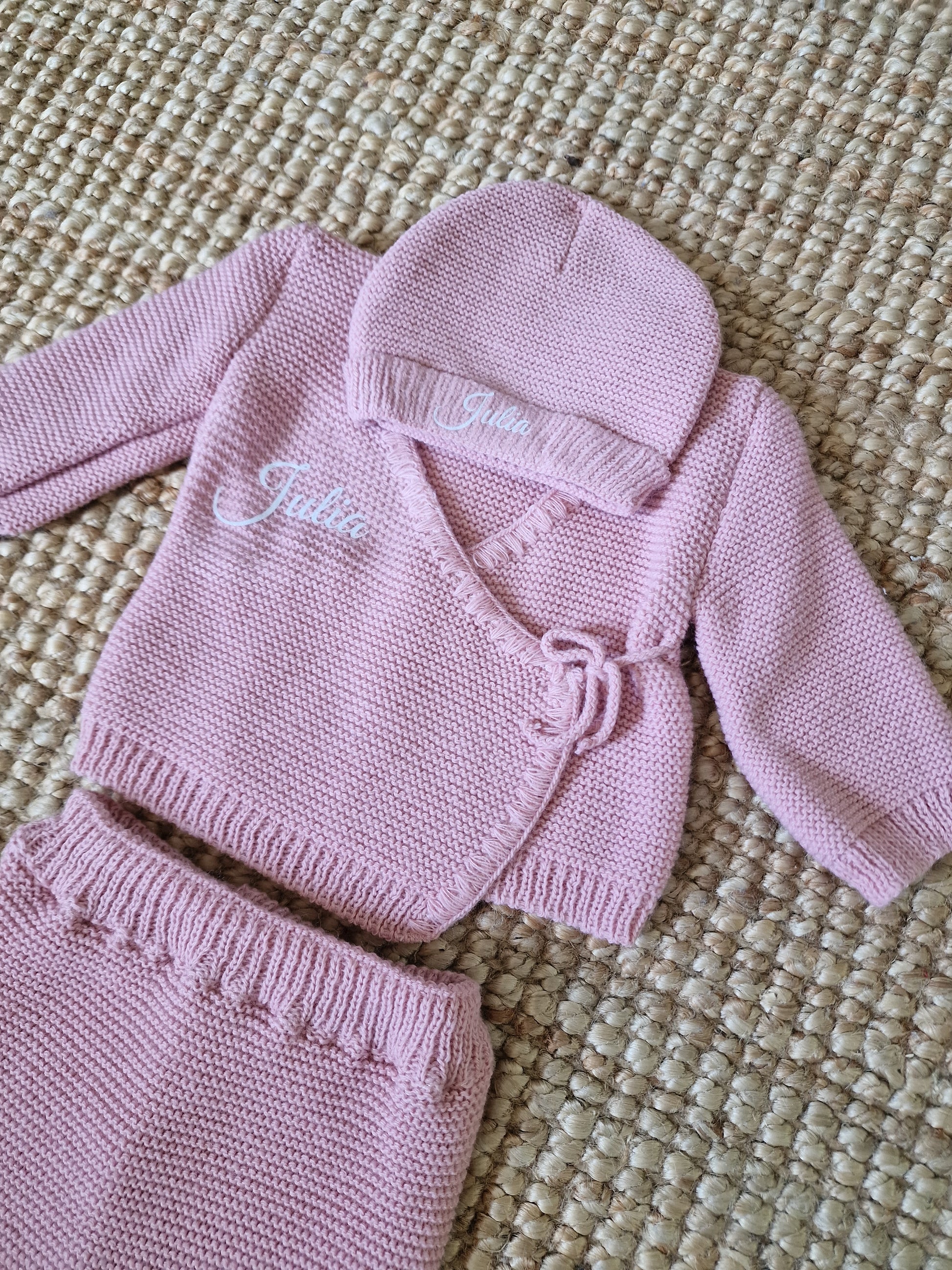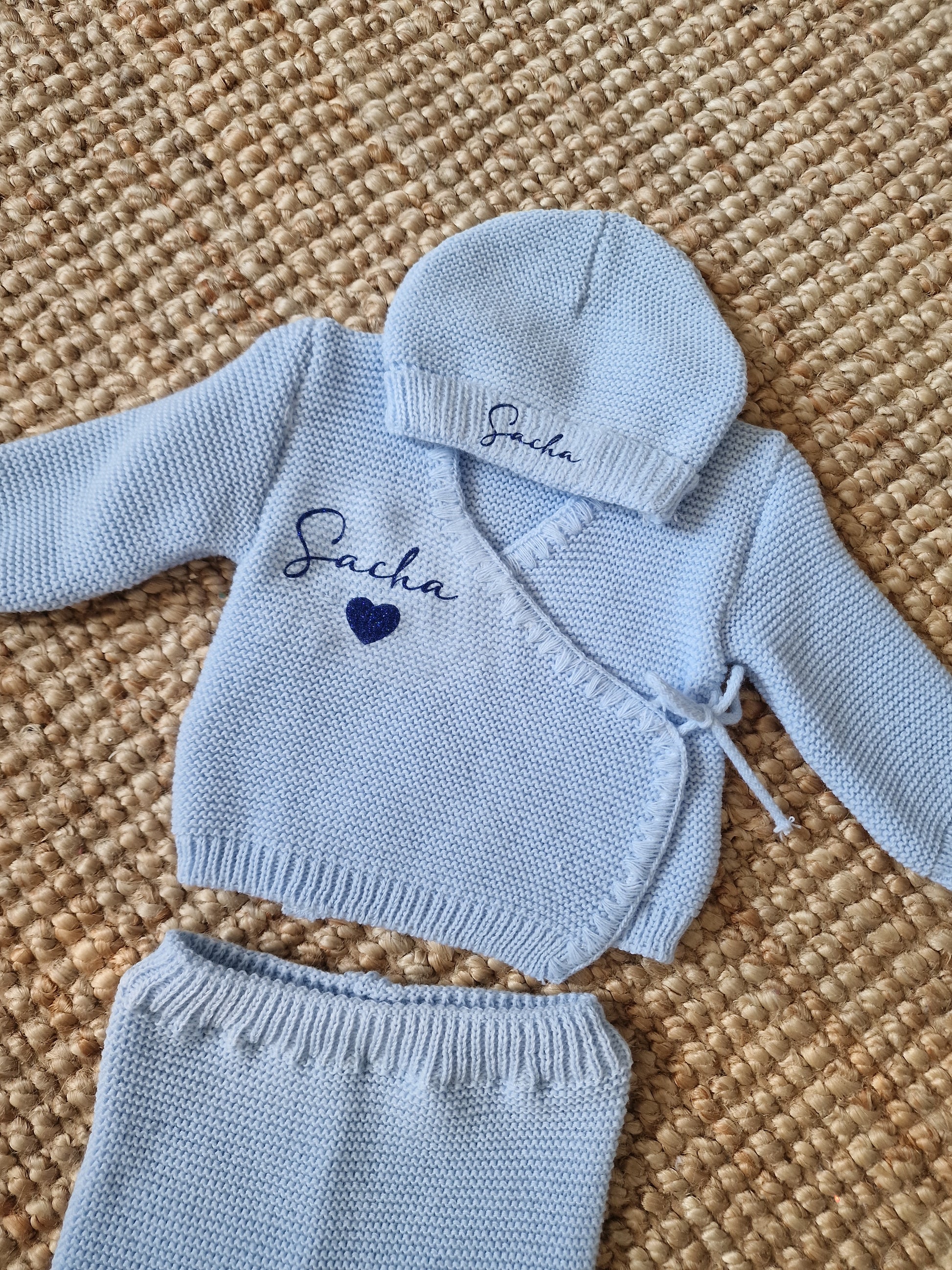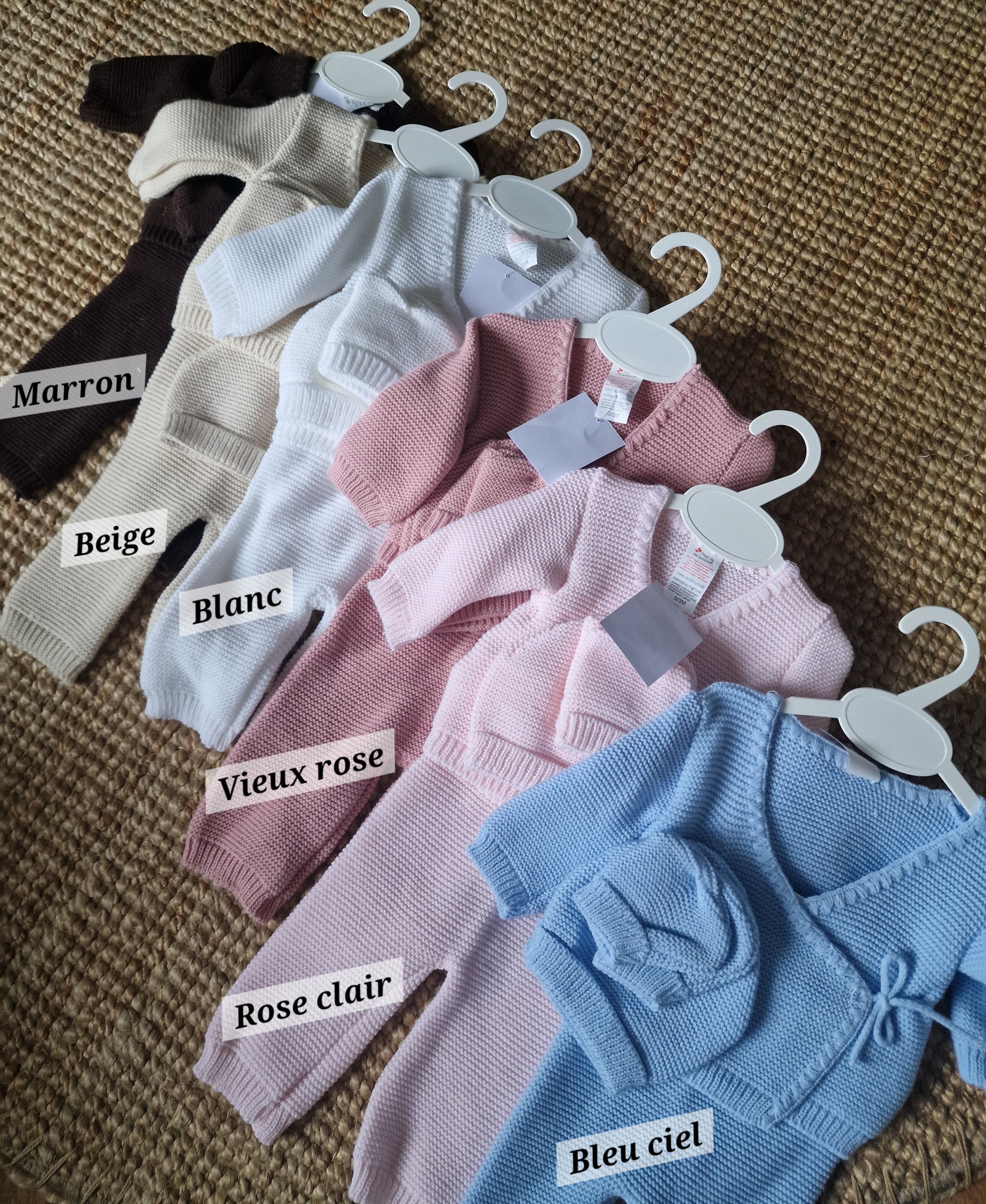 Disponible en plusieurs couleurs, nos ensembles sont composés d'une petite brassiere, un pantalon, un bonnet et des chaussons.